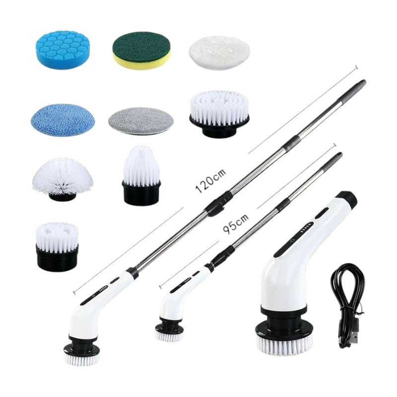 Escova de Limpeza Elétrica Multiuso Sem Fio – 7 em 1 / 9 em 1 com Cabo Extensível e Acessórios Recarregáveis