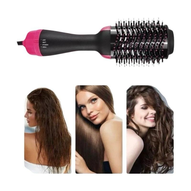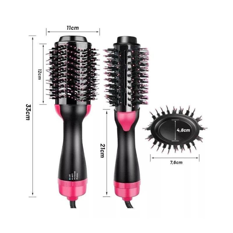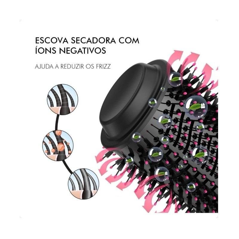 Transforme sua rotina com a Escova Secadora Modeladora Elétrica! Com design oval exclusivo e tecnologia de ar quente com íons negativos, ela alisa, seca e modela ao mesmo tempo, oferecendo fios mais lisos, com menos frizz e muito mais brilho.
