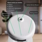 Ideal para uso no quarto, escritório ou como presente criativo, ele também oferece aromaterapia, luz ambiente e função relógio em um design elegante.