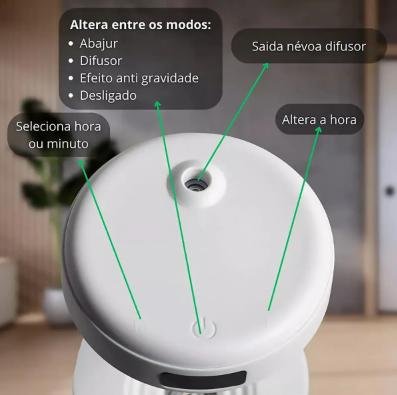 O Umidificador Anti-Gravidade com Relógio LED é mais do que um difusor: é uma peça decorativa inovadora que combina tecnologia, relaxamento e funcionalidade em um só produto.