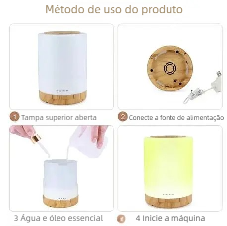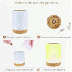 Compacto, silencioso e elegante, ele melhora a umidade do ar, difunde fragrâncias com óleos essenciais e ainda cria uma atmosfera agradável com luz LED suave.
